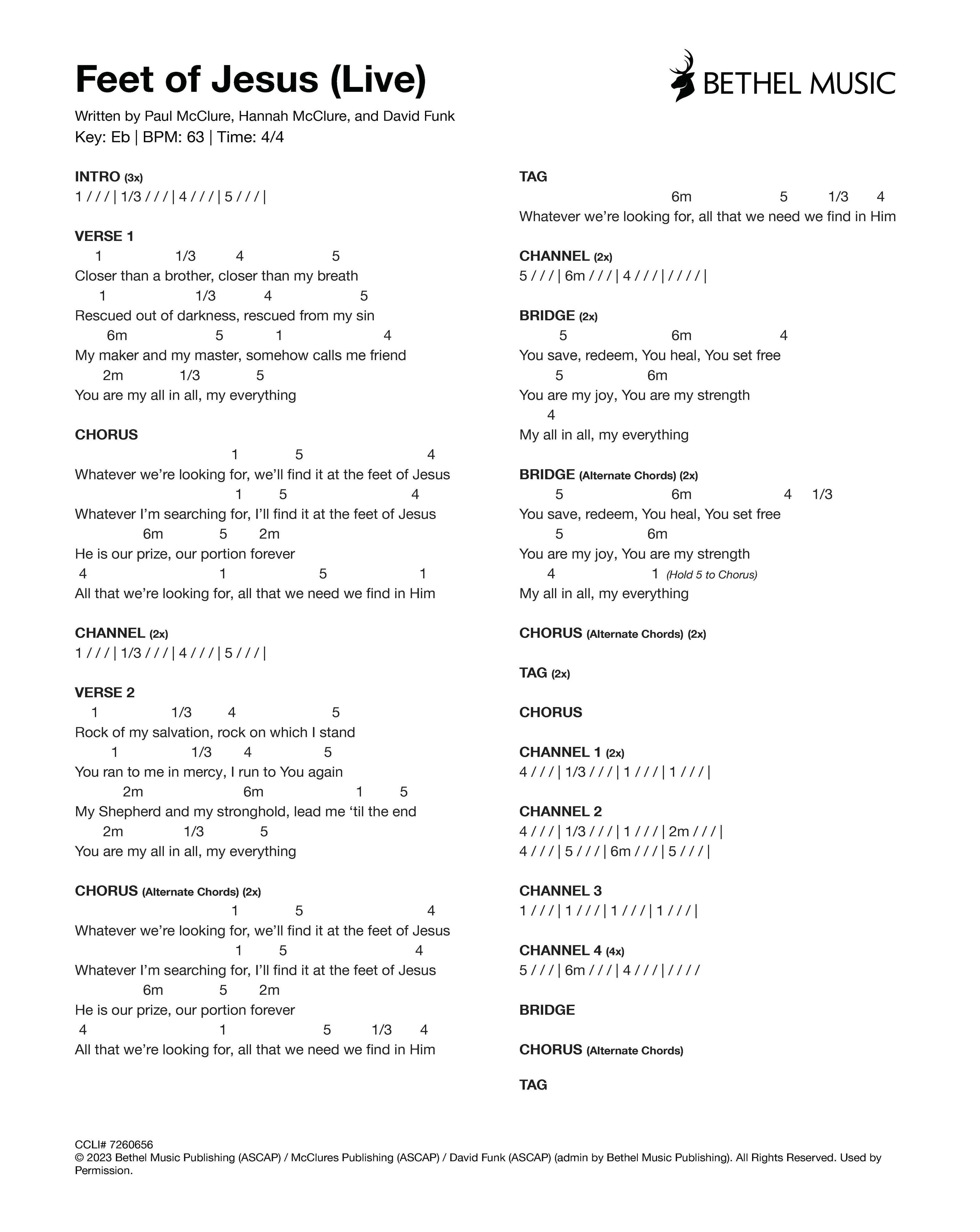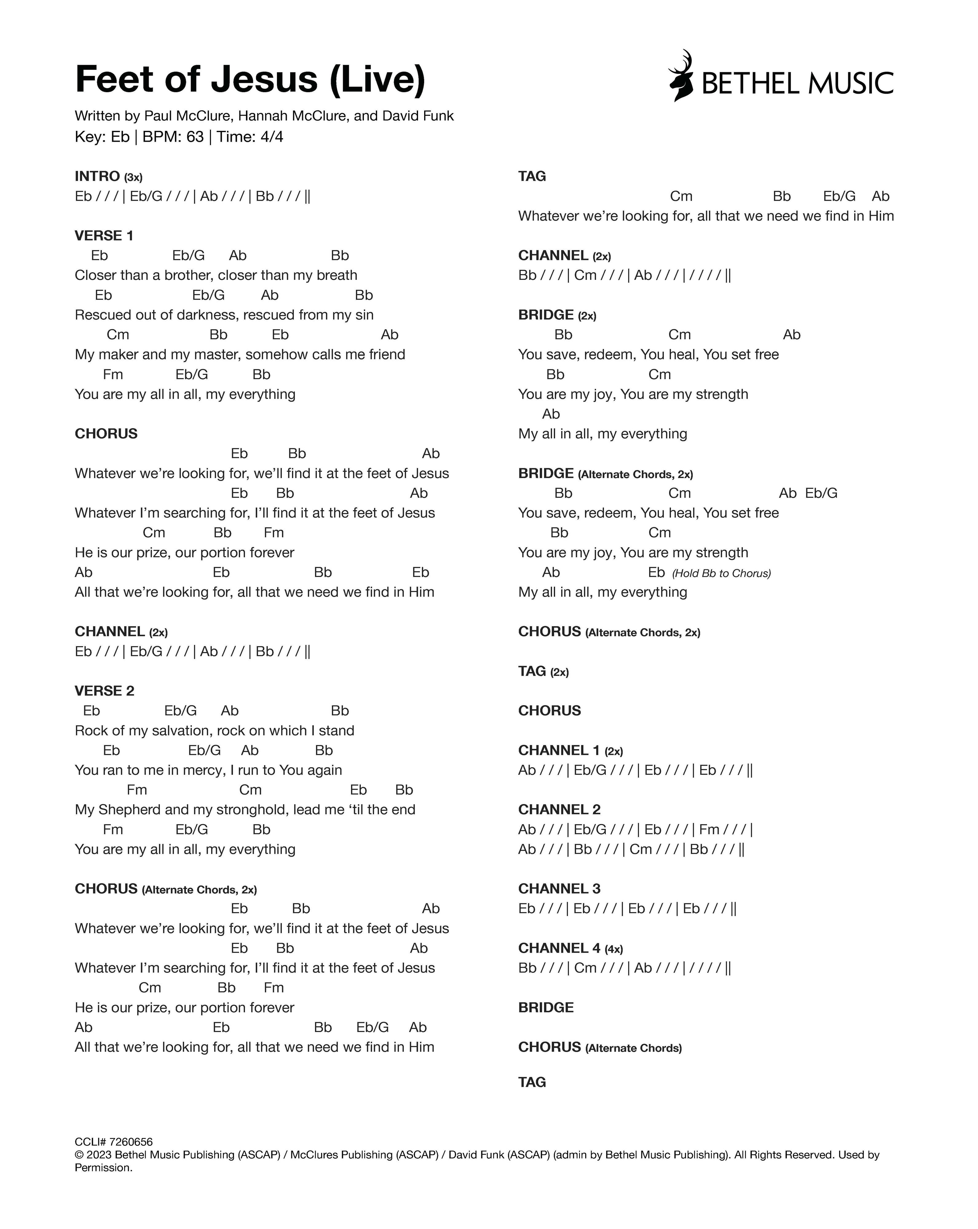 © 2023 Bethel Music Publishing (ASCAP) / McClures Publishing (ASCAP) / David Funk (ASCAP) (admin by Bethel Music Publishing). All Rights Reserved. Used by Permission.