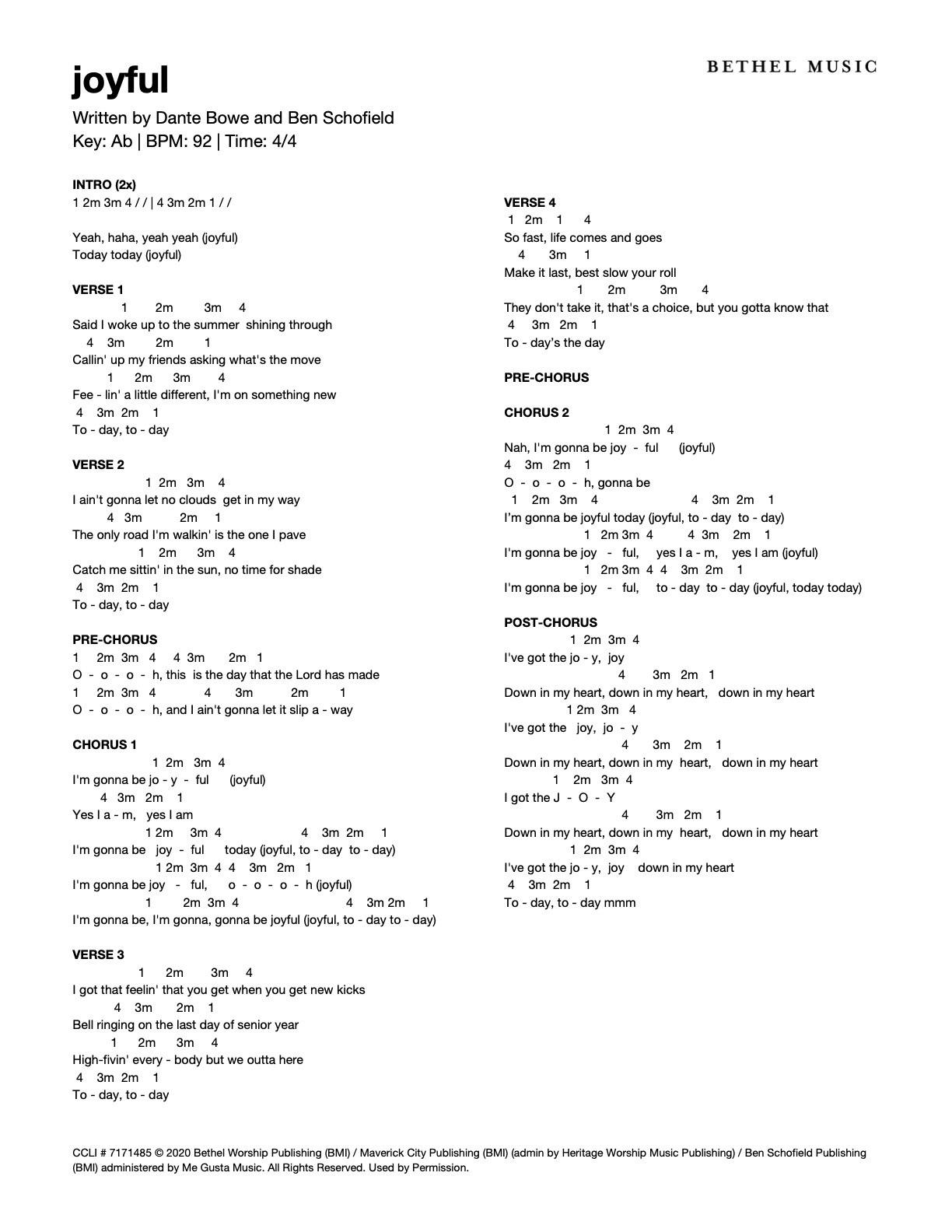 © 2020 Bethel Worship Publishing (BMI) / Maverick City Publishing (BMI) (admin by Heritage Worship Music Publishing) / Ben Schofield Publishing (BMI) administered by Me Gusta Music. All Rights Reserved. Used by Permission.