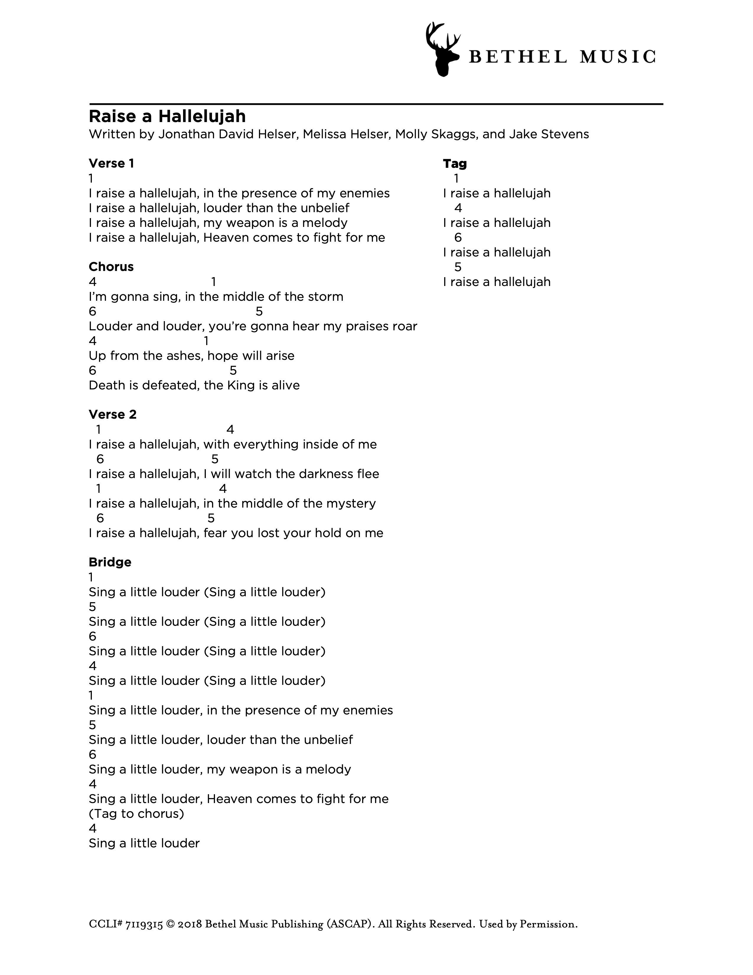 © 2018 Bethel Music Publishing (ASCAP). All Rights Reserved. Used by Permission.