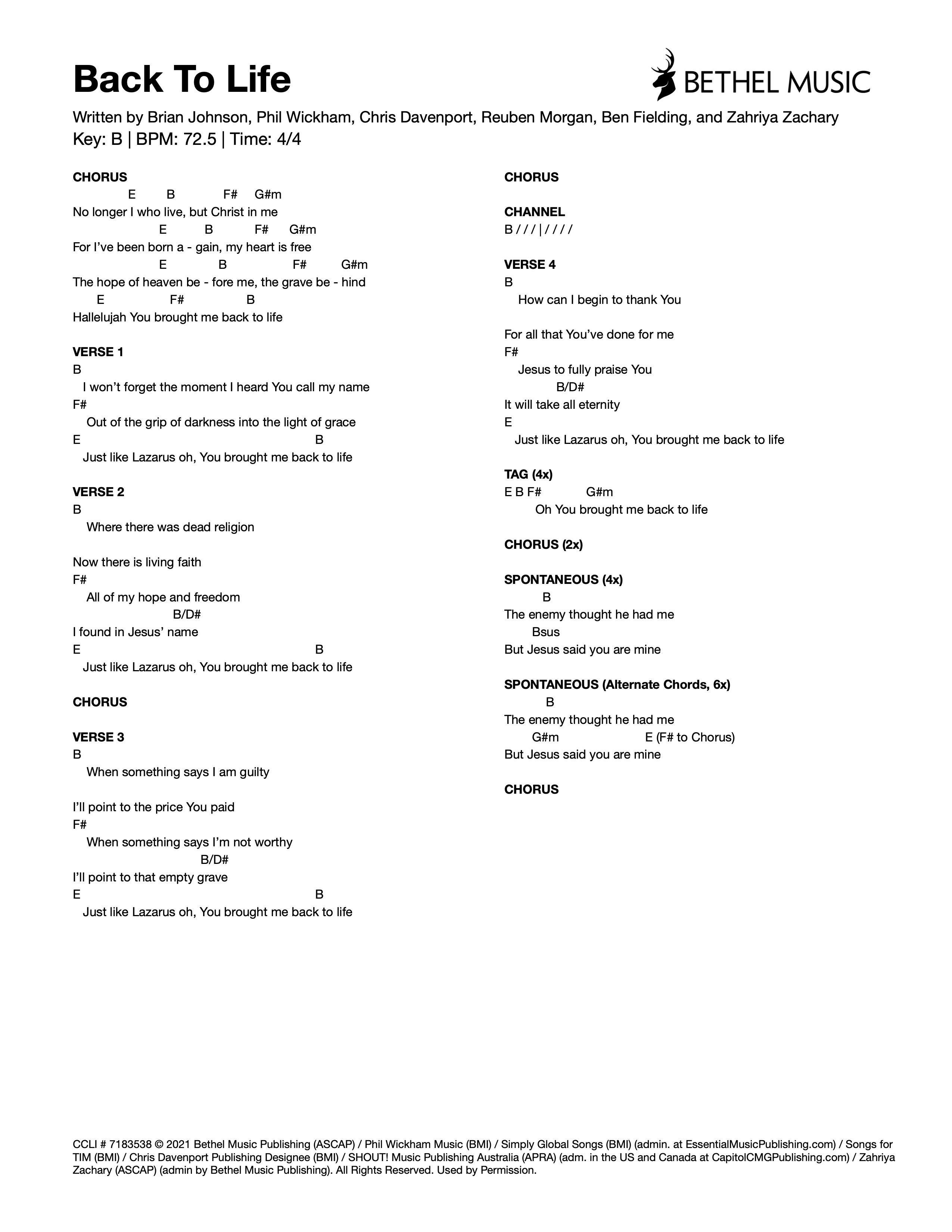© 2021 Phil Wickham Music (BMI) / Simply Global Songs (BMI) (admin. at EssentialMusicPublishing.com) / Bethel Music Publishing (ASCAP) / Brian and Jenn Publishing (ASCAP) / Songs for TIM (BMI) / Chris Davenport Publishing Designee (BMI) / SHOUT! Music Publishing Australia (APRA) (adm. in the US and Canada at CapitolCMGPublishing.com) / Zahriya Zachary (ASCAP) (admin by Bethel Music Publishing). All Rights Reserved. Used by Permission.