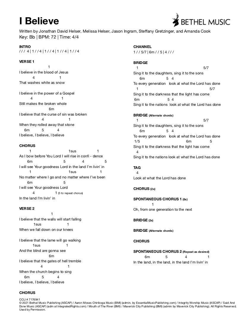 © 2021 Bethel Music Publishing (ASCAP) / Quiltmaker Music (ASCAP) (admin by Bethel Music Publishing) / Be Essential Songs (BMI) / My Magnolia Music (BMI) / We Are TIM Music (ASCAP) / Wonder Meadow Music (ASCAP) (adm. at CapitolCMGPublishing.com) / All Essential Music (ASCAP) / Maison Publishing (ASCAP) (admin. by EssentialMusicPublishing.com). All Rights Reserved. Used by Permission.