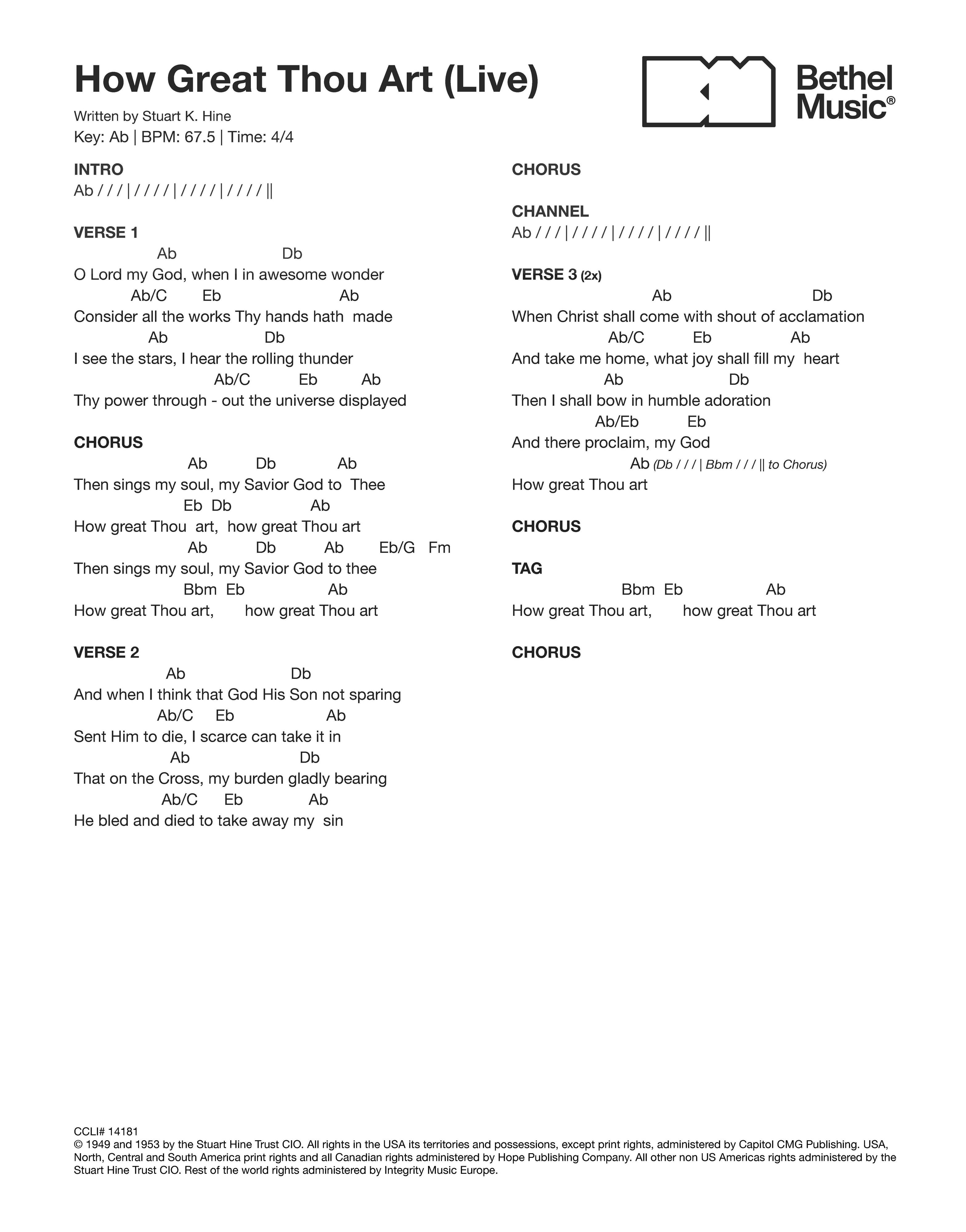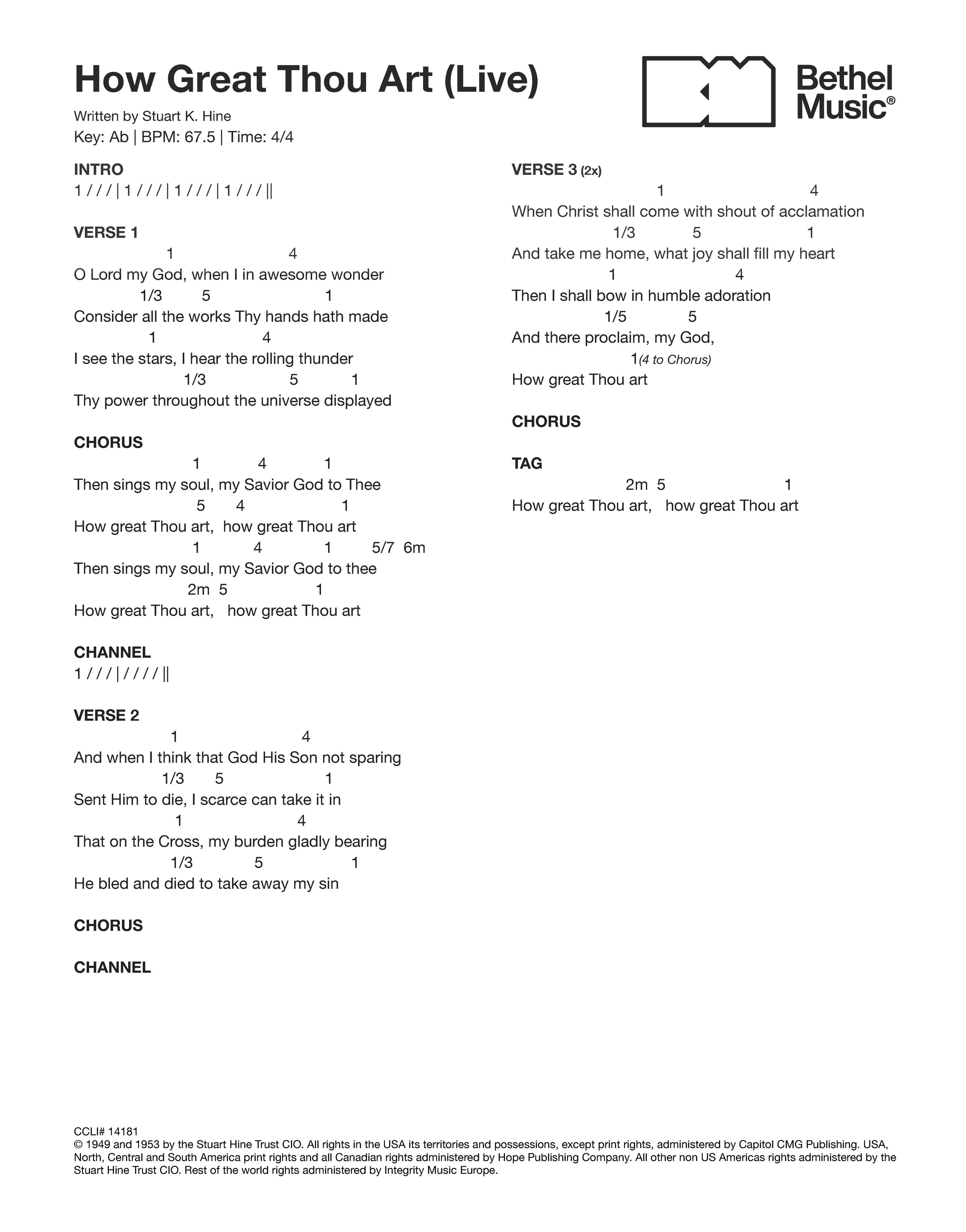 © 1949 and 1953 by the Stuart Hine Trust CIO. All rights in the USA its territories and possessions, except print rights, administered by Capitol CMG Publishing. USA, North, Central and South America print rights and all Canadian rights administered by Hope Publishing Company. All other non US Americas rights administered by the Stuart Hine Trust CIO. Rest of the world rights administered by Integrity Music Europe.