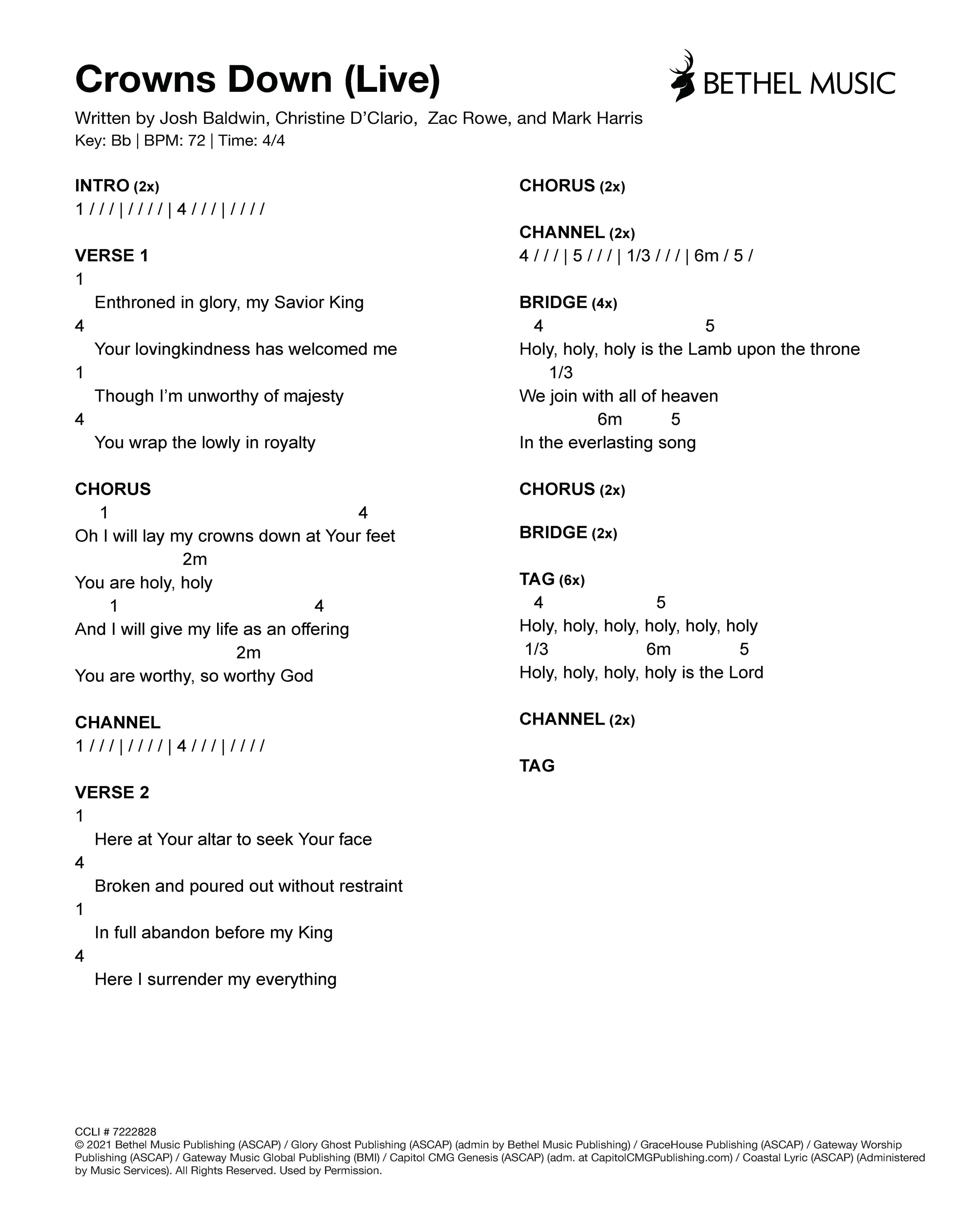 © 2021 Bethel Music Publishing (ASCAP) / Glory Ghost Publishing (ASCAP) (admin by Bethel Music Publishing) / GraceHouse Publishing (ASCAP) / Gateway Worship Publishing (ASCAP) / Gateway Music Global Publishing (BMI) / Capitol CMG Genesis (ASCAP) (adm. at CapitolCMGPublishing.com) / Coastal Lyric (ASCAP) (Administered by Music Services). All Rights Reserved. Used by Permission.