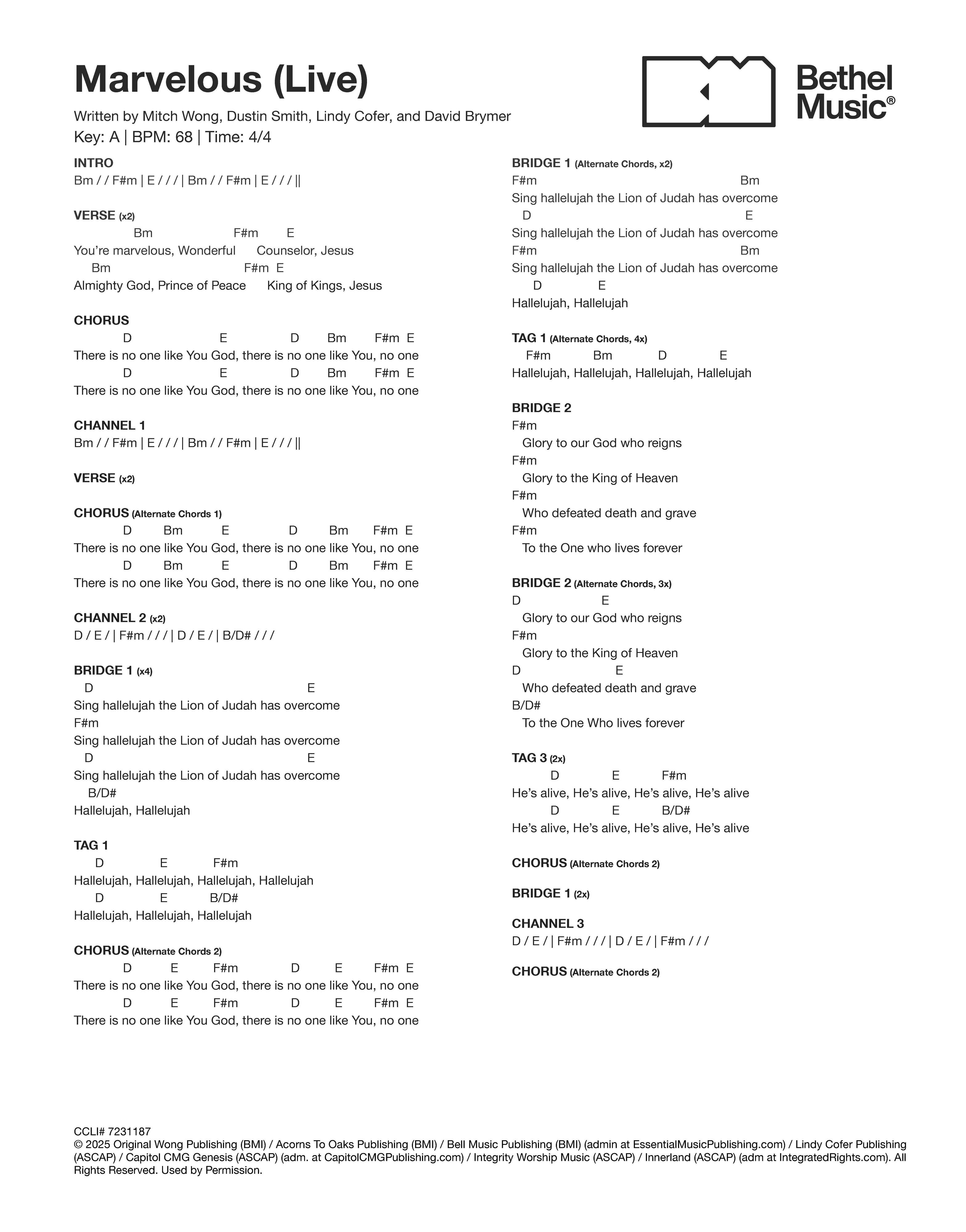 © 2025 Original Wong Publishing (BMI) / Acorns To Oaks Publishing (BMI) / Bell Music Publishing (BMI) (admin at EssentialMusicPublishing.com) / Lindy Cofer Publishing (ASCAP) / Capitol CMG Genesis (ASCAP) (adm. at CapitolCMGPublishing.com) / Integrity Worship Music (ASCAP) / Innerland (ASCAP) (adm at IntegratedRights.com). All Rights Reserved. Used by Permission.