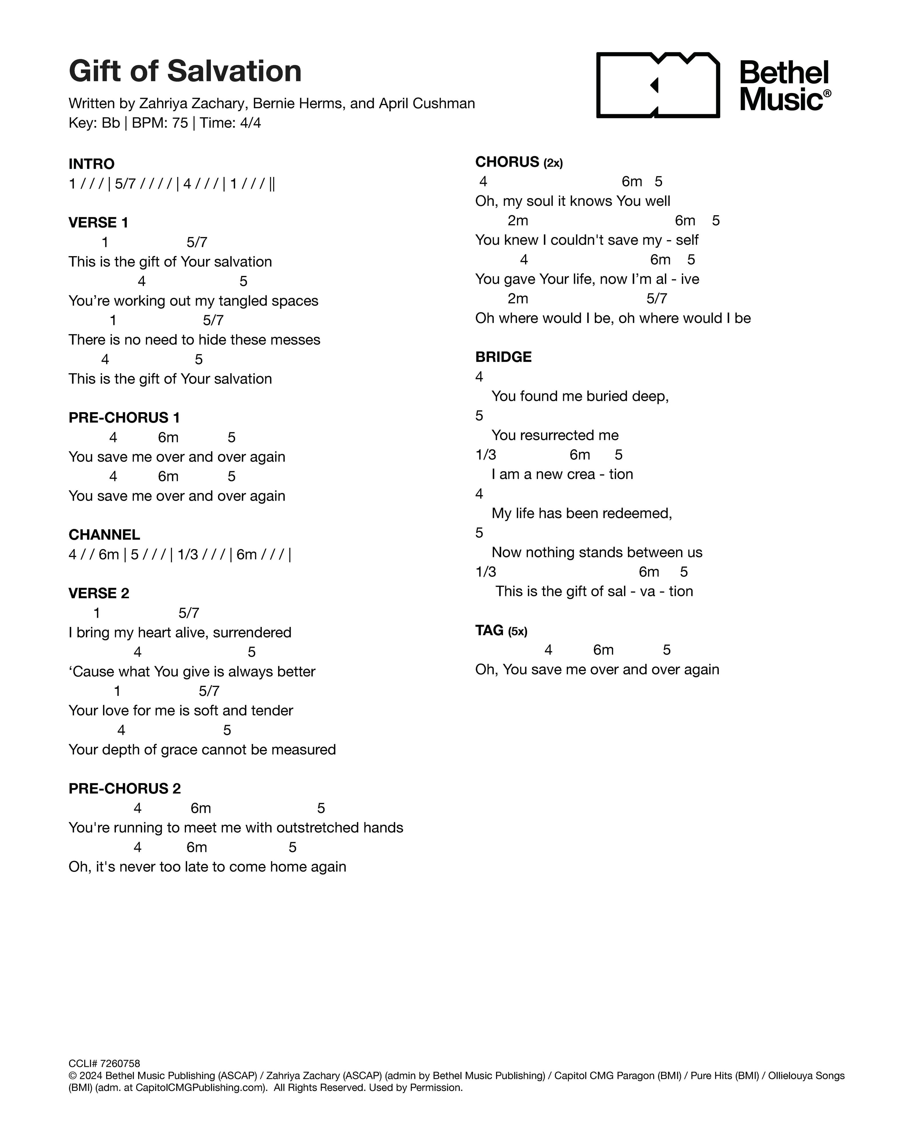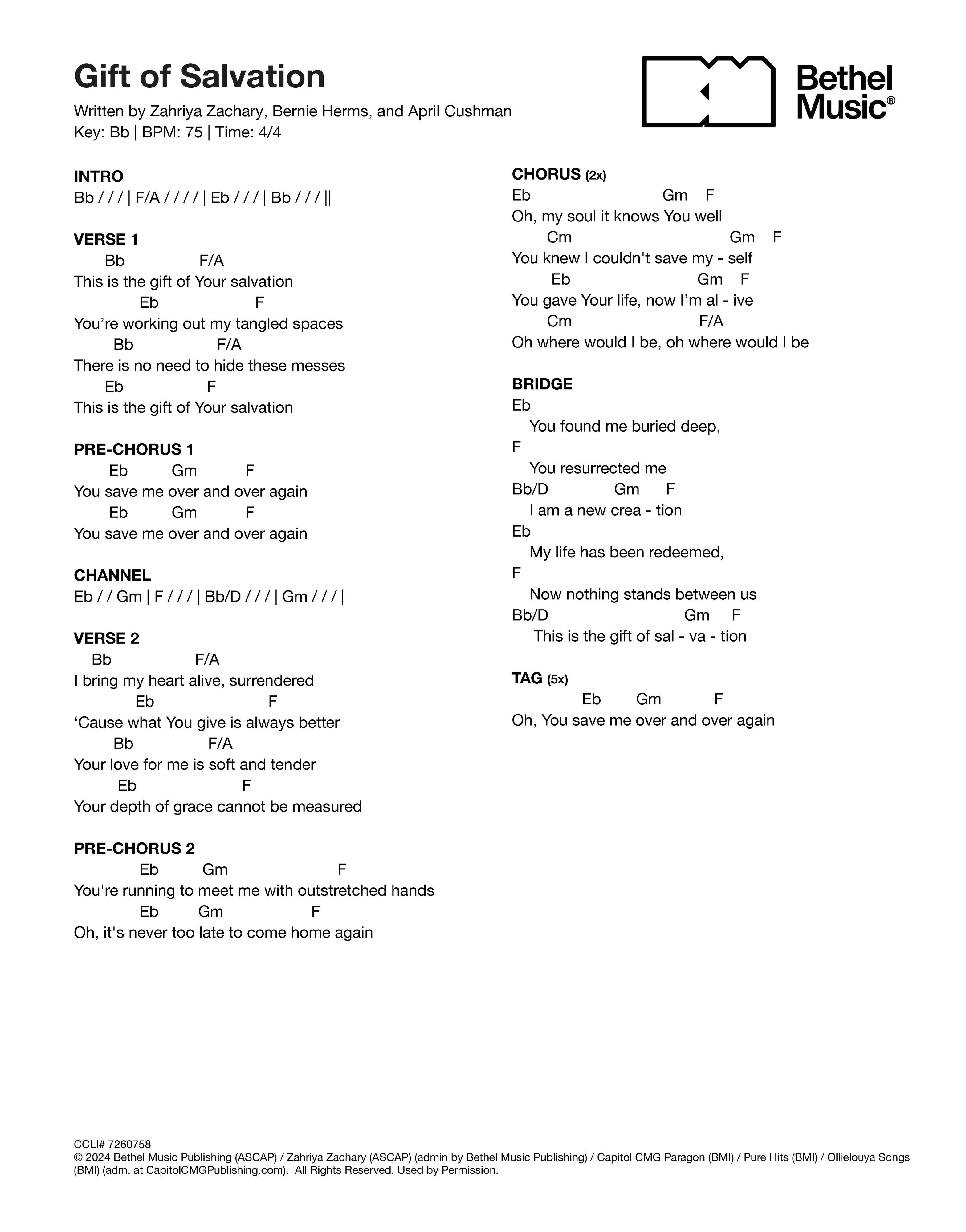 © 2024 Bethel Music Publishing (ASCAP) / Zahriya Zachary (ASCAP) (admin by Bethel Music Publishing) / Capitol CMG Paragon (BMI) / Pure Hits (BMI) / Ollielouya Songs (BMI) (adm. at CapitolCMGPublishing.com). All Rights Reserved. Used by Permission.