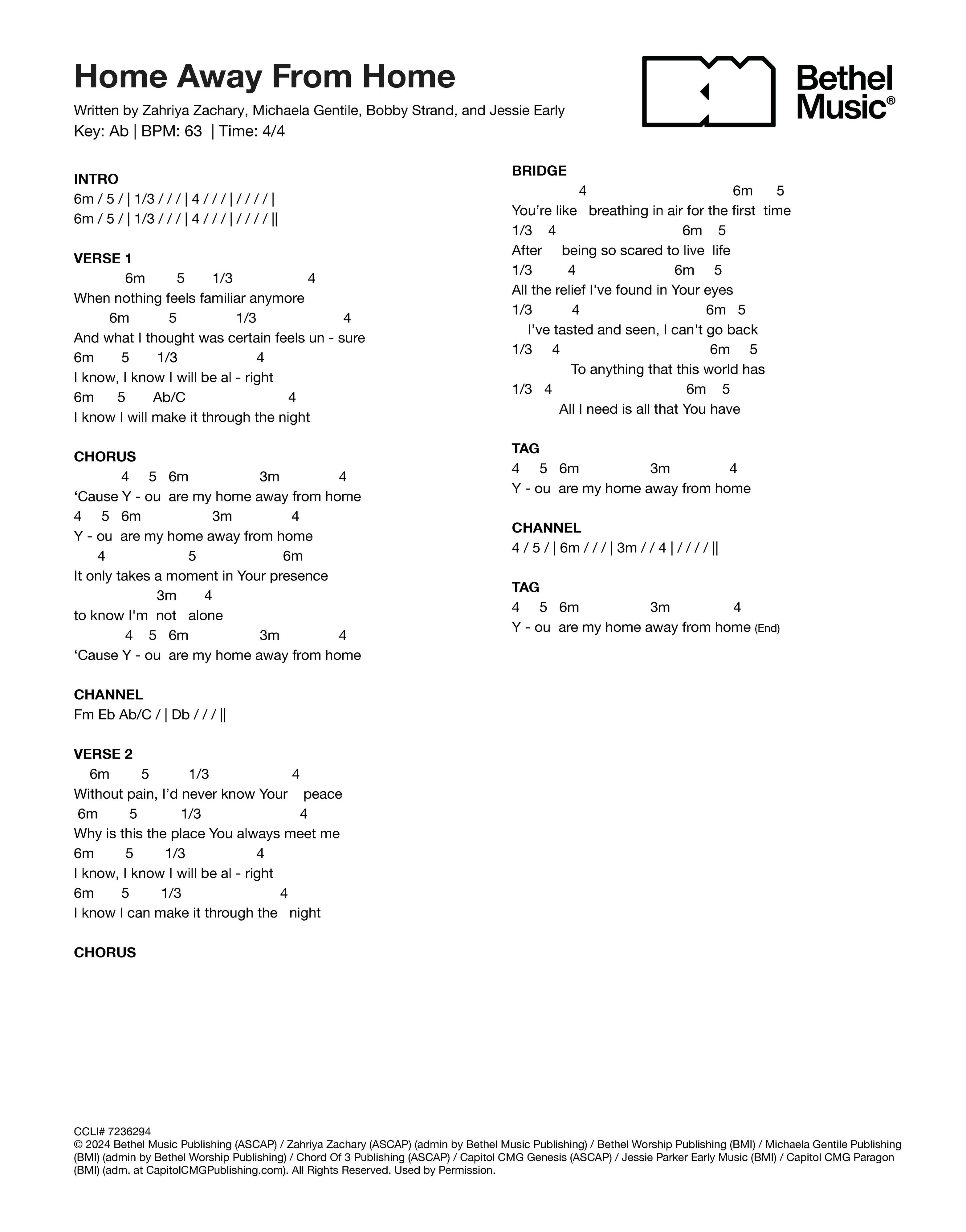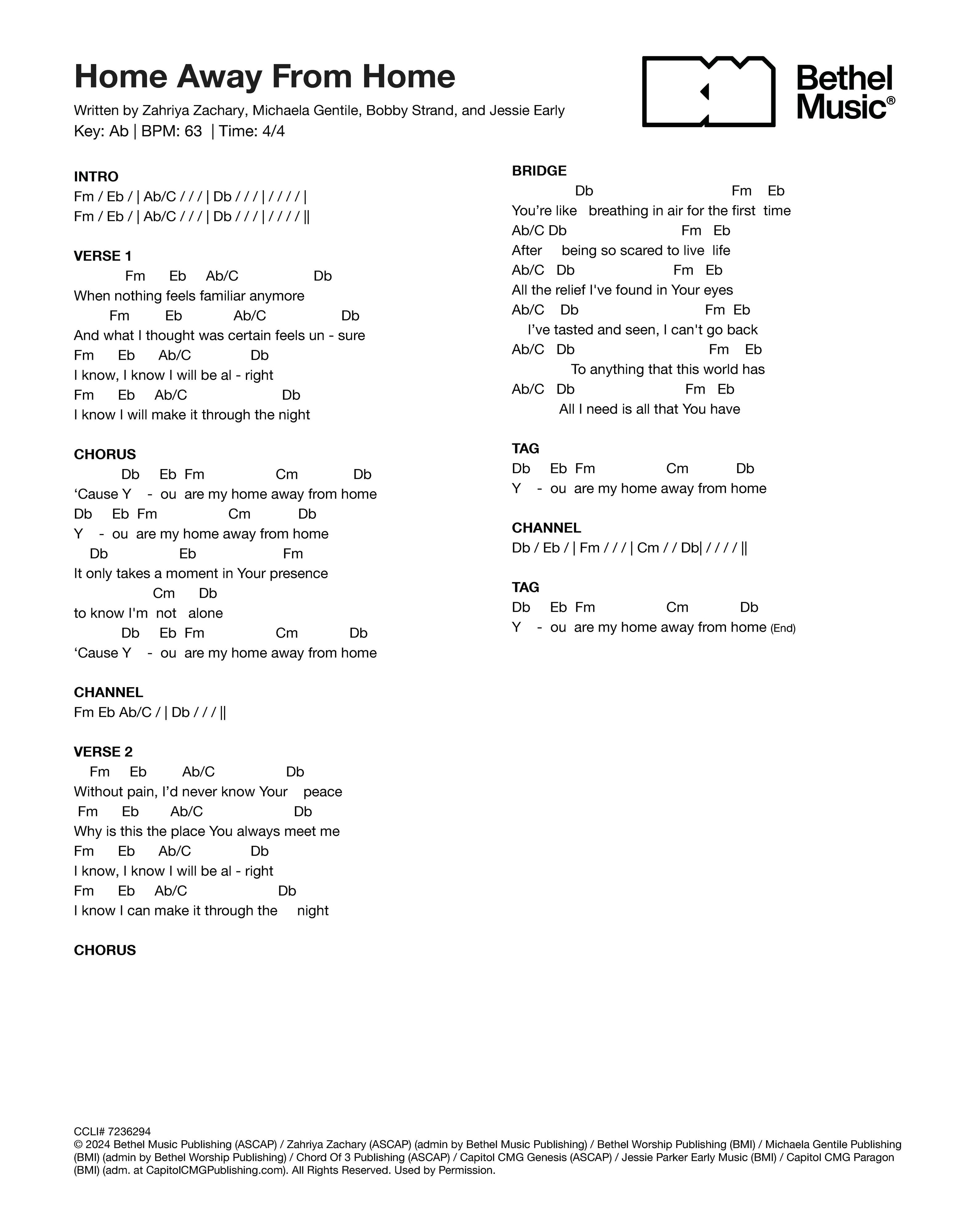 © 2024 Bethel Music Publishing (ASCAP) / Zahriya Zachary (ASCAP) (admin by Bethel Music Publishing) / Bethel Worship Publishing (BMI) / Michaela Gentile Publishing (BMI) (admin by Bethel Worship Publishing) / Chord Of 3 Publishing (ASCAP) / Capitol CMG Genesis (ASCAP) / Jessie Parker Early Music (BMI) / Capitol CMG Paragon (BMI) (adm. at CapitolCMGPublishing.com). All Rights Reserved. Used by Permission.