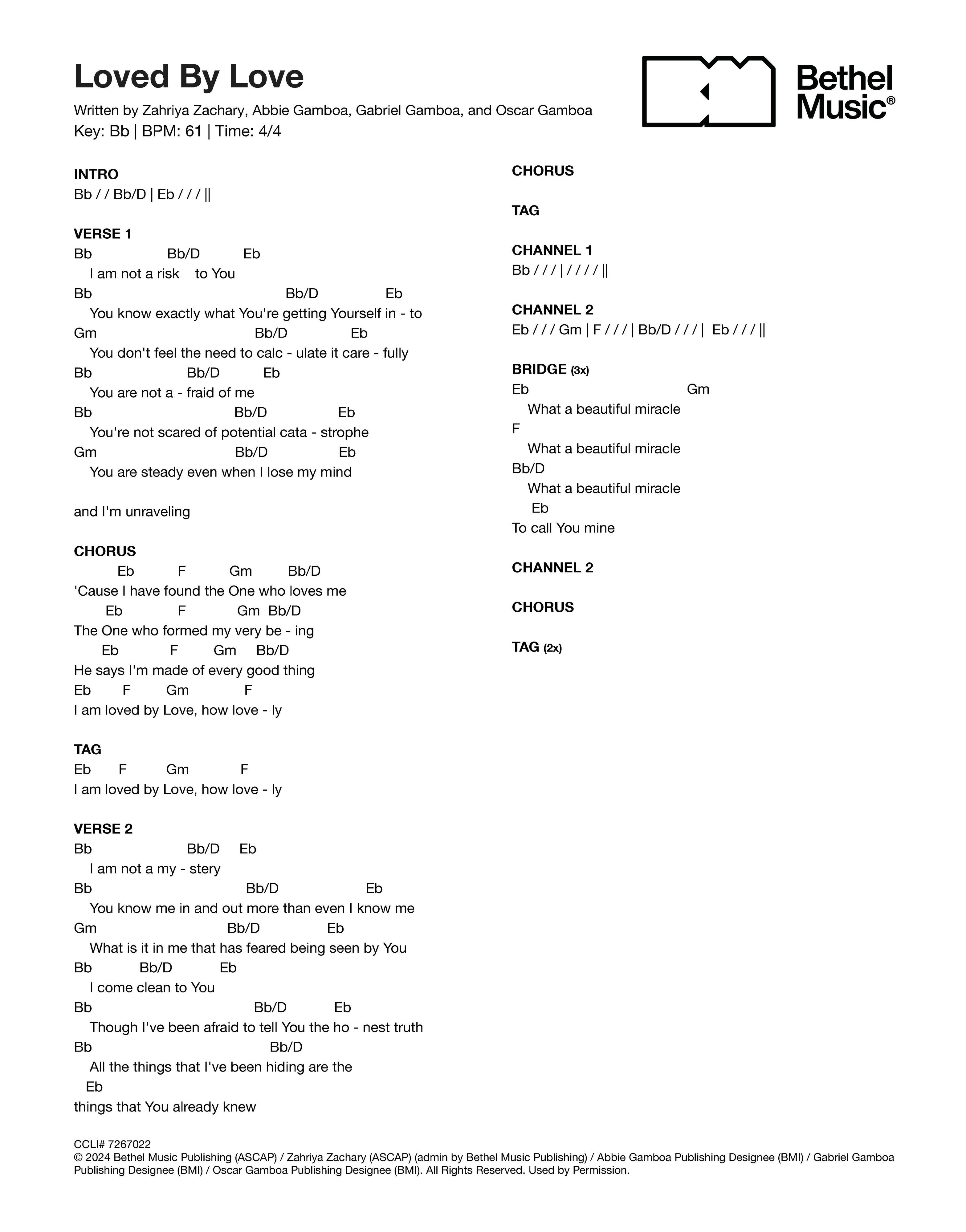 © 2024 Bethel Music Publishing (ASCAP) / Zahriya Zachary (ASCAP) (admin by Bethel Music Publishing) / Abbie Gamboa Publishing Designee (BMI) / Gabriel Gamboa Publishing Designee (BMI) / Oscar Gamboa Publishing Designee (BMI). All Rights Reserved. Used by Permission.