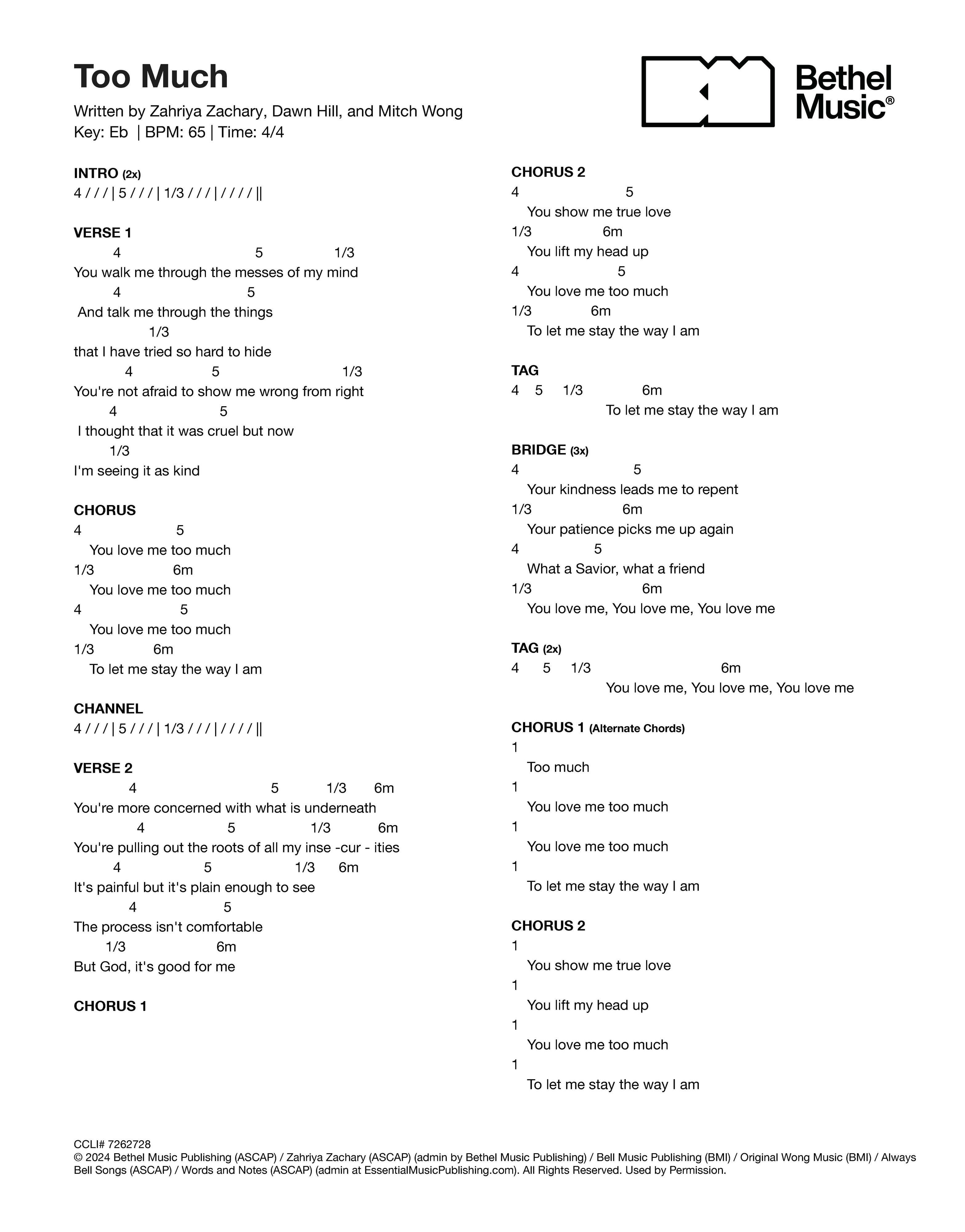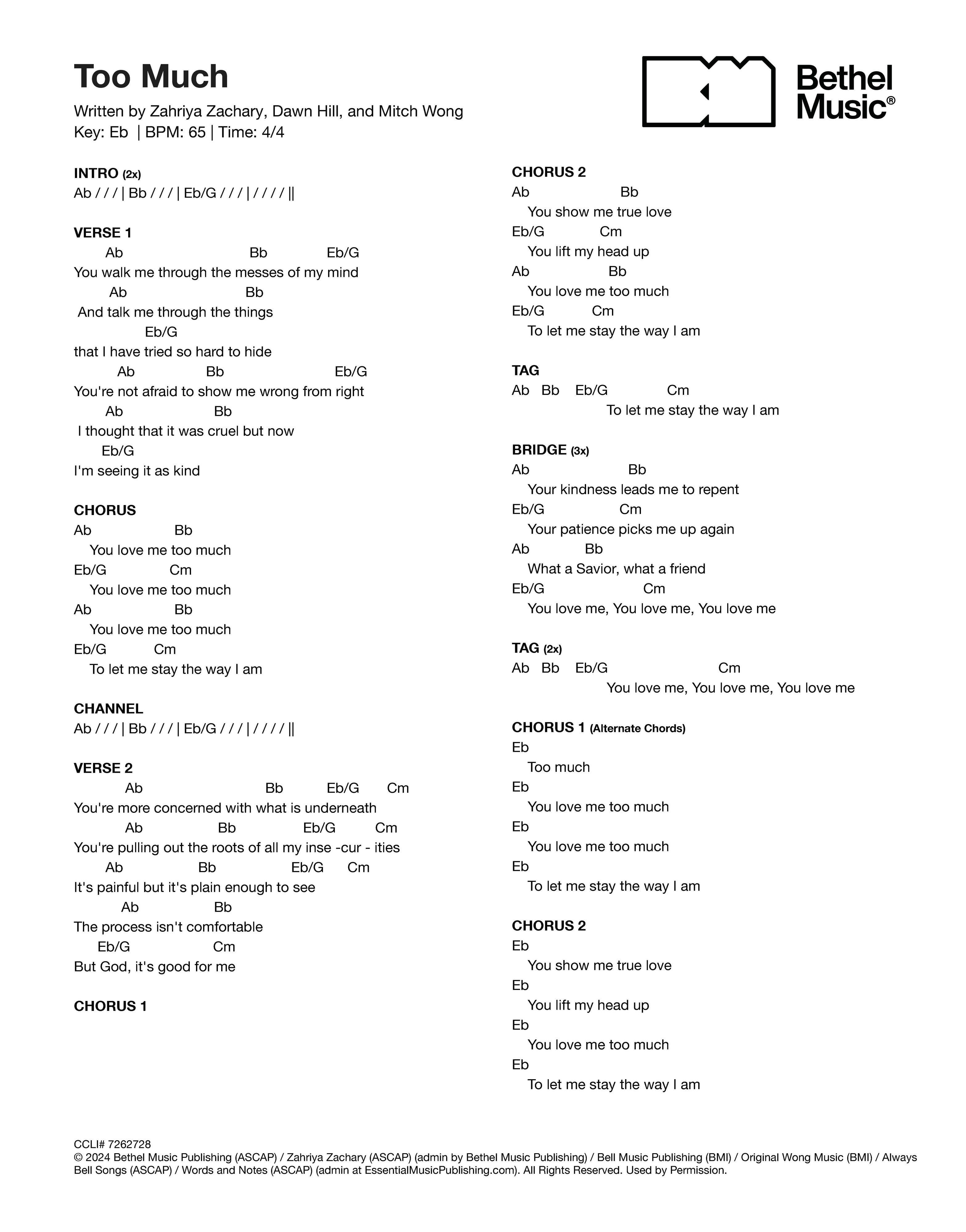 © 2024 Bethel Music Publishing (ASCAP) / Zahriya Zachary (ASCAP) (admin by Bethel Music Publishing) / Bell Music Publishing (BMI) / Original Wong Music (BMI) / Always Bell Songs (ASCAP) / Words and Notes (ASCAP) (admin at EssentialMusicPublishing.com). All Rights Reserved. Used by Permission.