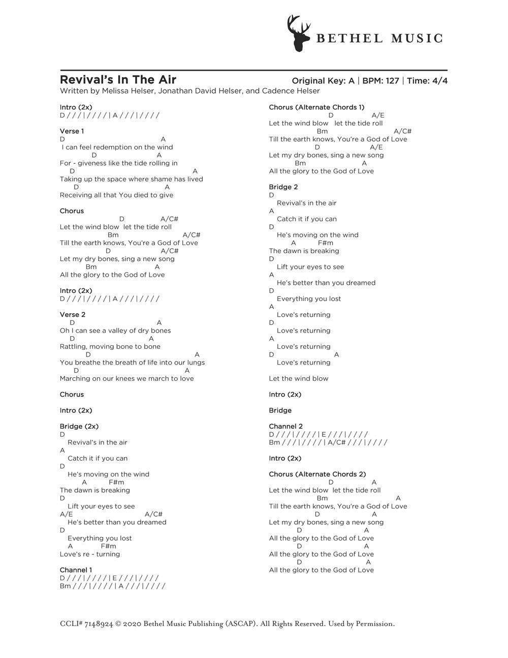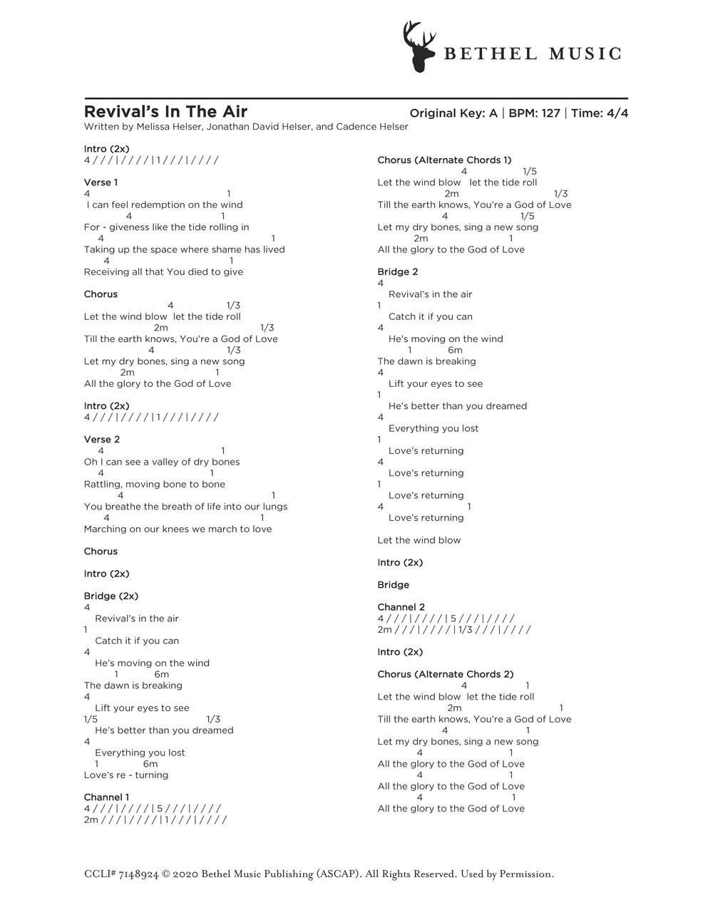 © 2020 Bethel Music Publishing (ASCAP). All Rights Reserved. Used by Permission.