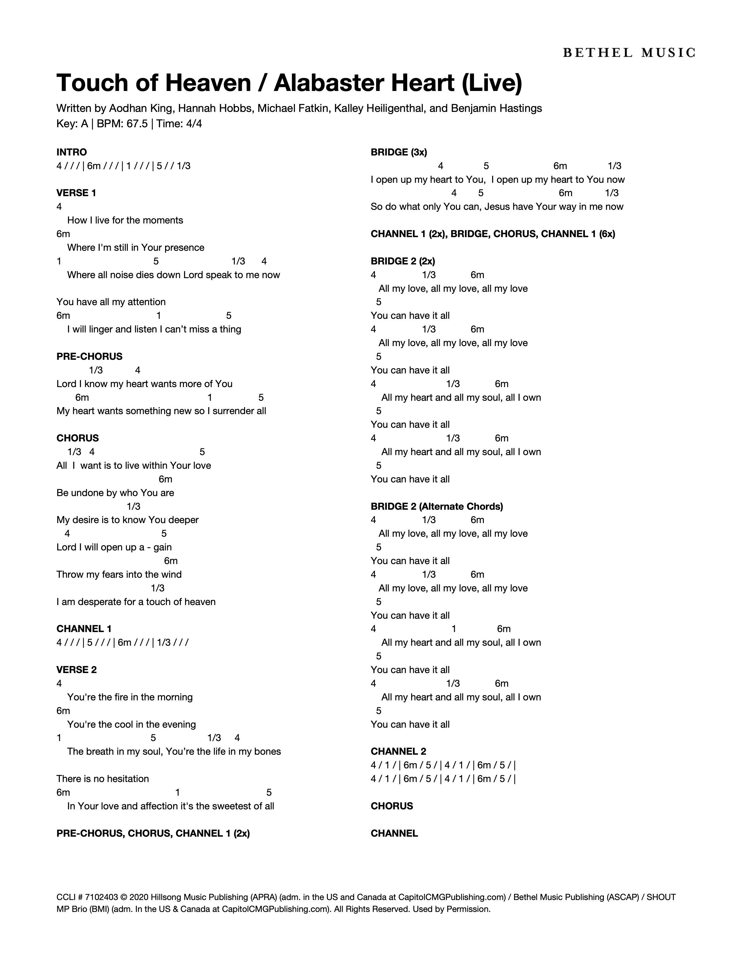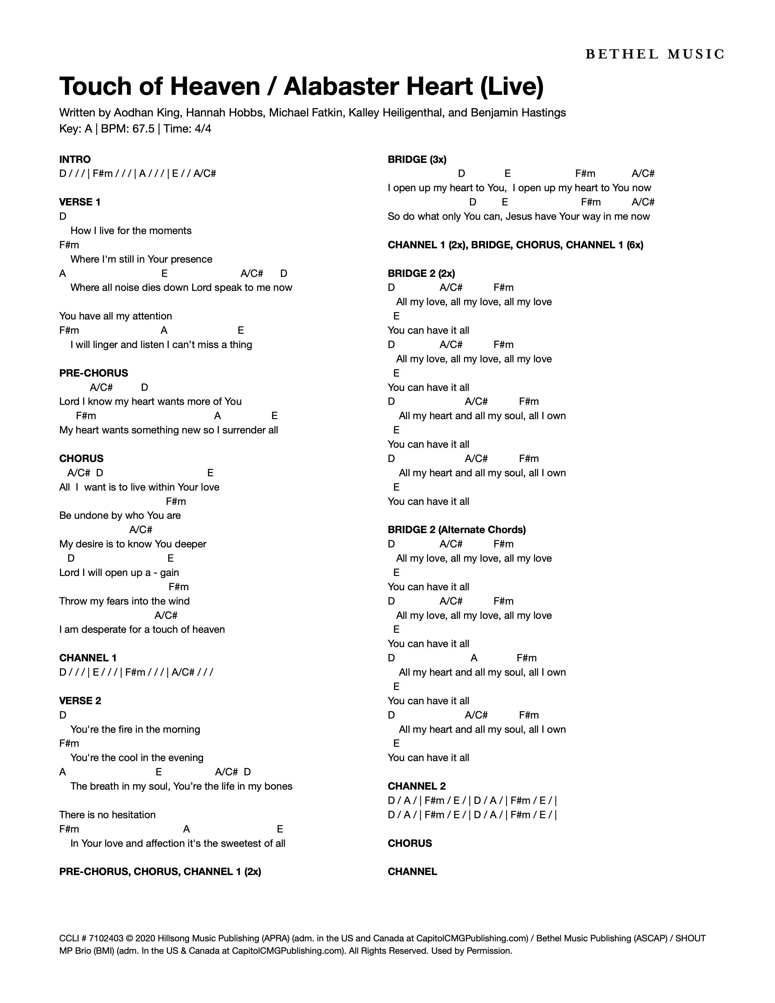 © 2020 Hillsong Music Publishing (APRA) (adm. in the US and Canada at CapitolCMGPublishing.com) / Bethel Music Publishing (ASCAP) / SHOUT MP Brio (BMI) (adm. In the US & Canada at CapitolCMGPublishing.com). All Rights Reserved. Used by Permission.
